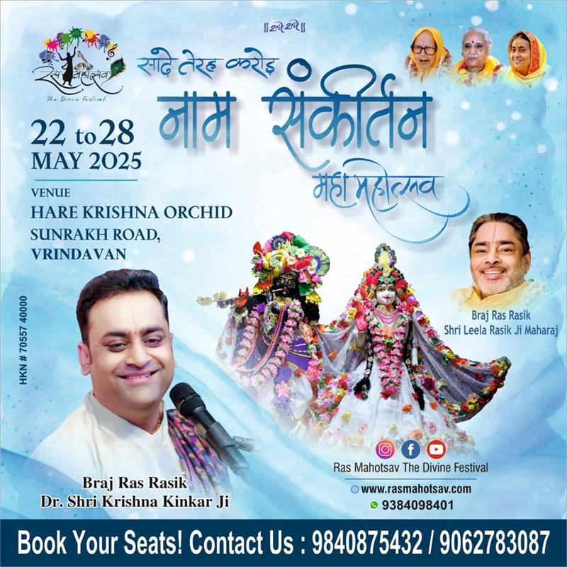 Join us in May 2025 and take part in this sacred event to chant, connect, and immerse yourself in the divine names of Shri Radha Krishna.